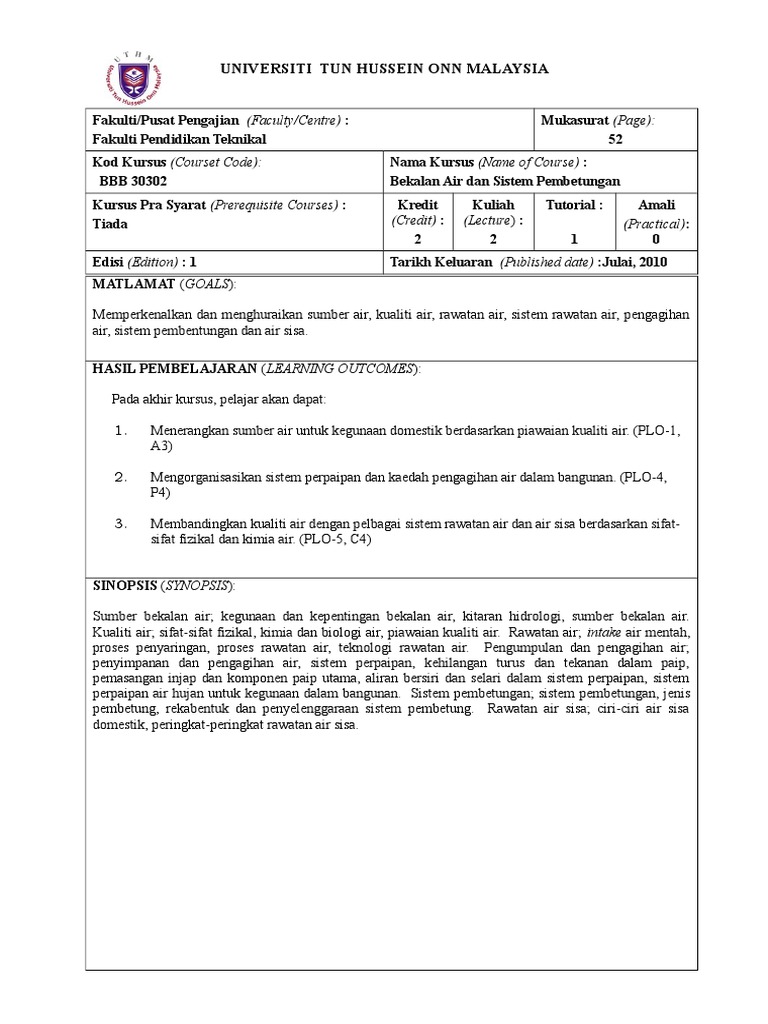 Bbb 30302 Bekalan Air Dan Sistem Pembetungan